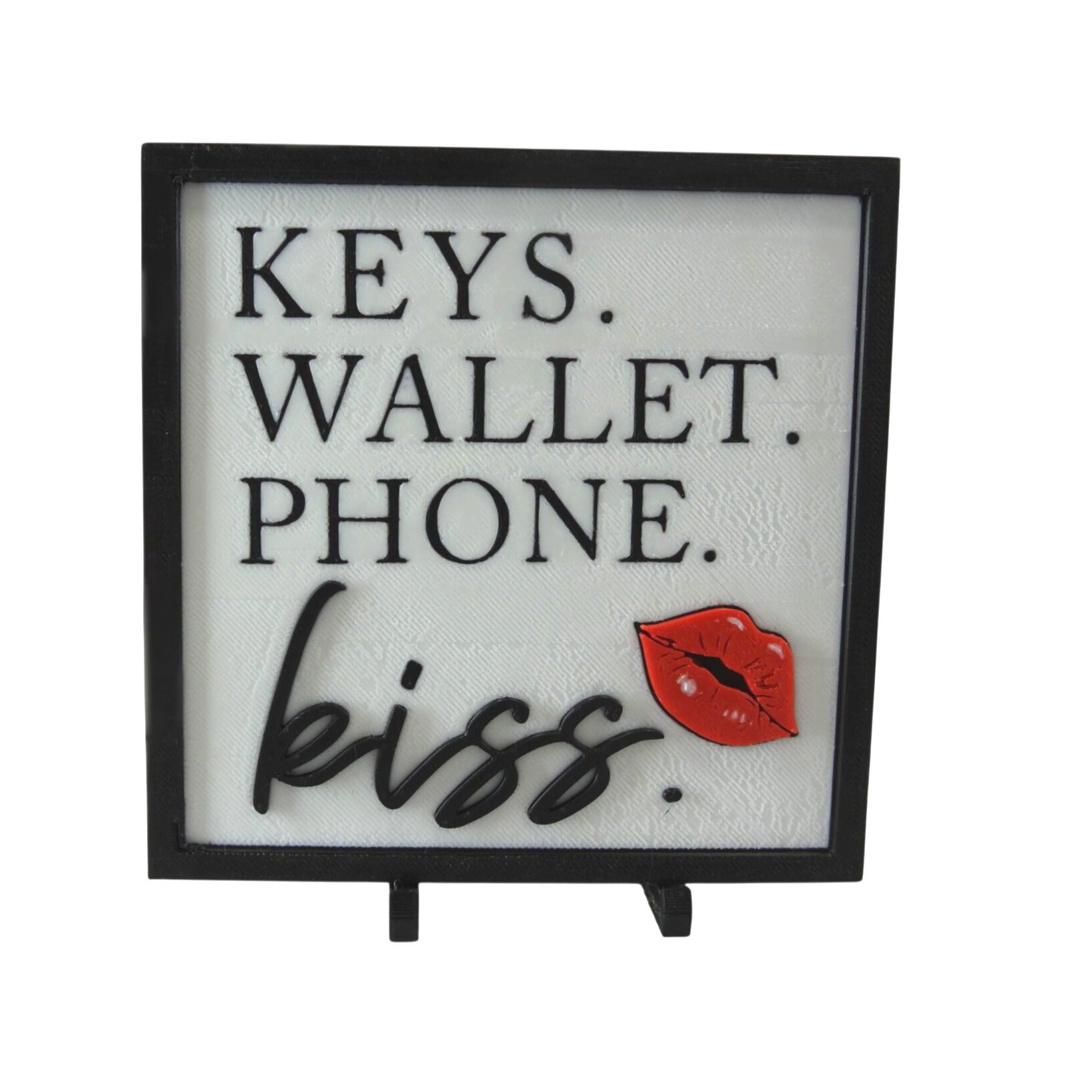 Keys Wallet Phone Kiss 3D Printed Sign-Romantic Entryway Decor, Funny Daily Checklist Desk Plaque with Stand, Gift for Husband or Wife